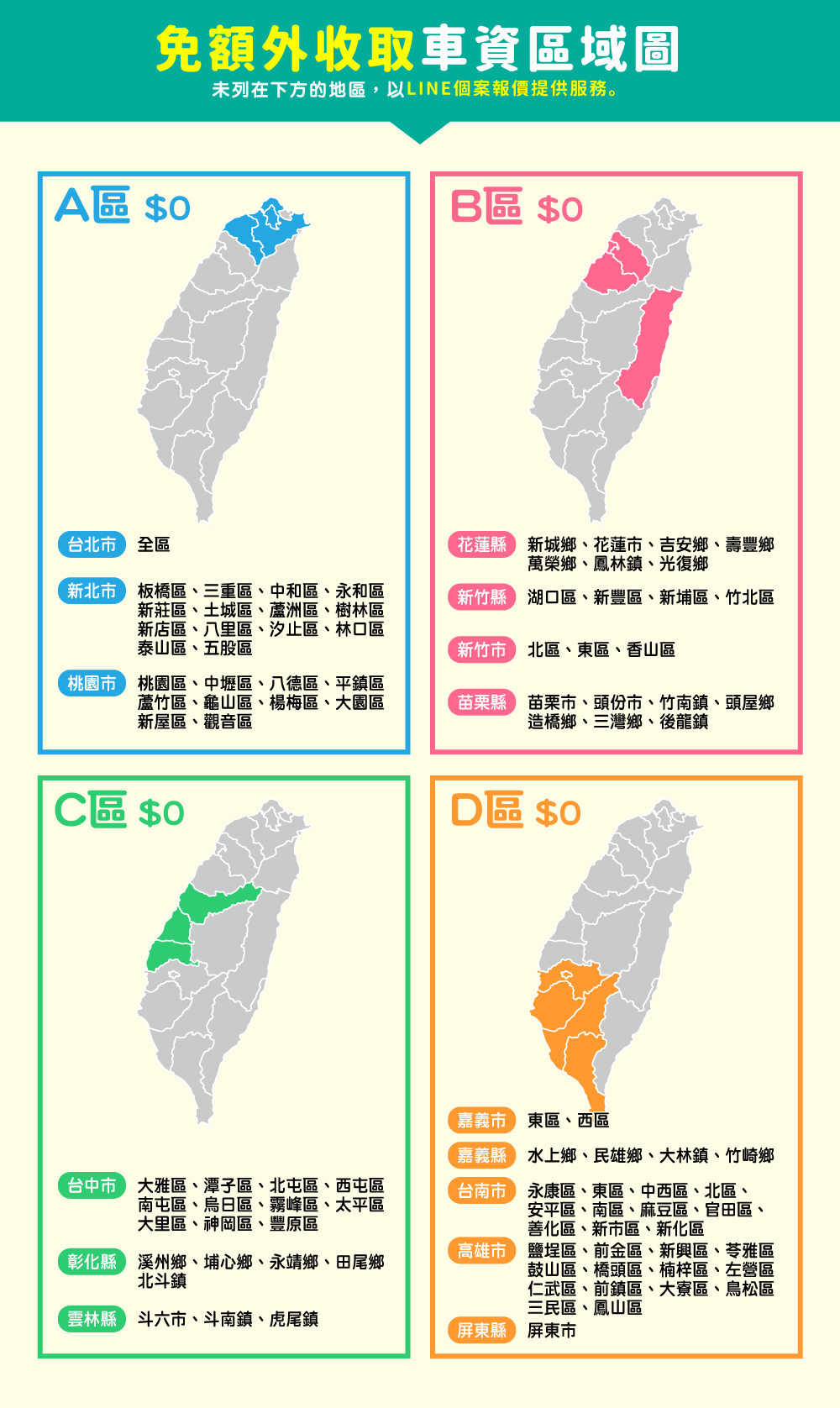 👉了解您的區域是否需額外收車資? (點我)